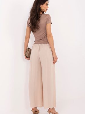 Τα παν trousers τύπου palazzo είναι η ιδανική πρόταση για καθημερινή χρήση για γυναίκες που εκτιμούν την άνεση και το διαχρονικό στυλ. Ο απλός σχεδιασμός τους τους δίνει μια универсаль χαρακτήρα, καθιστώντας τους εύκολους στην προσαρμογή σε διάφορα ρούχα. Το μοντέλο κατασκευασμένο από ελαφριά και αεράτη βισκόζη προσφέρει άνεση ακόμα και τις πιο ζεστές μέρες. Οι μακριές, φαρδιές γάμπες απλώνονται όμορφα σε κίνηση, προσθέτοντας ελαφρότητα και κομψότητα στη σιλουέτα. Τα παν trousers είναι εξοπλισμένα με κορδόνι στη μέση, που επιτρέπει την ατομική προσαρμογή, ενώ οι επιπλέον πλαϊνές, ανοιχτές τσέπες αυξάνουν τη λειτουργικότητά τους. Είναι η ιδανική επιλογή για καθημερινές στυλιστικές προτάσεις, τόσο σε casual όσο και σε πιο θηλυκή διάθεση.
