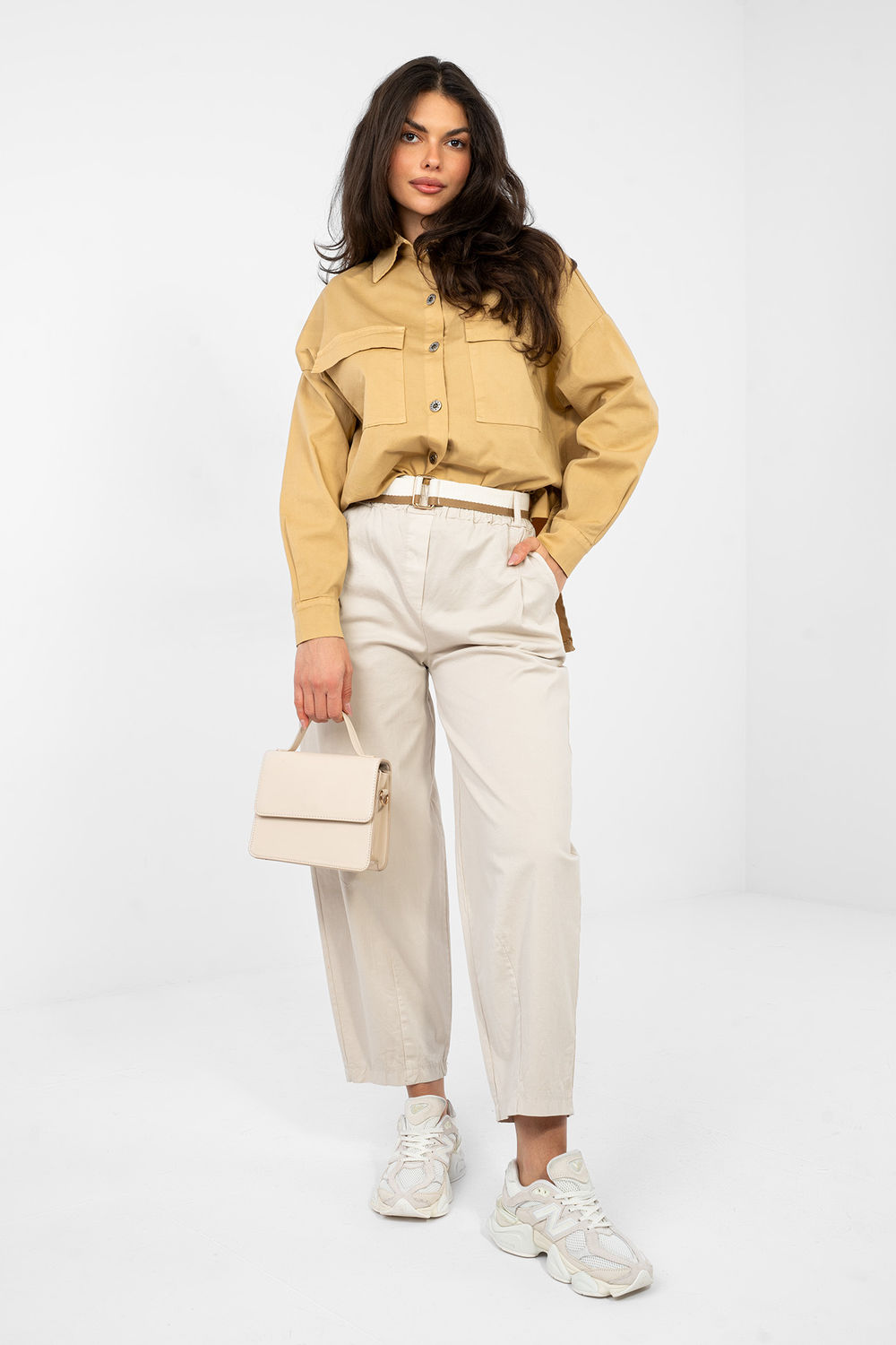 Άνετο και στυλάτο παντελόνι σε γραμμή carrot, ιδανικό για καθημερινές, casual στυλιστικές επιλογές. Κατασκευασμένο από υψηλής ποιότητας βαμβάκι με προσθήκη ελαστάνης, που προσφέρει άνεση και ελαφρότητα κατά την χρήση καθώς και διακριτική ελαστικότητα. Το παντελόνι έχει ψηλή μέση, ενώ οι μπατζάκια είναι στενά και φτάνουν σε μήκος 7/8, δίνοντάς του έναν μοντέρνο χαρακτήρα. Στη μέση υπάρχει ραμμένο λάστιχο, ενώ επιπλέον το παντελόνι διαθέτει ζώνη με δυνατότητα κλειδώματος, που επιτρέπει την ιδανική εφαρμογή. Οι πρακτικές πλάγιες τσέπες προσθέτουν λειτουργικότητα, ενώ το λείο σχέδιο διευκολύνει την συνδυαστικότητα με διάφορα κομμάτια της γκαρνταρόμπας. Αυτό το παντελόνι είναι μια εξαιρετική επιλογή για άτομα που εκτιμούν την άνεση, την ελευθερία κινήσεων και το μοντέρνο casual look.