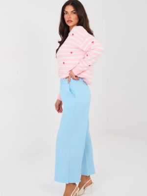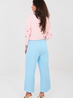 Τα γυναικεία παντελόνια σε στυλ wide leg είναι μια άνετη και στυλάτη πρόταση για καθημερινή χρήση και για το γραφείο. Κατασκευασμένα από υψηλής ποιότητας βαμβάκι με προσθήκη ελαστάνης, προσφέρουν άνεση, ελαστικότητα και καλή εφαρμογή στη σιλουέτα. Το μοντέλο με λεία υφή και ψηλή μέση αναδεικνύει υπέροχα τη μέση, ενώ η ενσωματωμένη ελαστική ζώνη στη μέση εξασφαλίζει άνεση και ελευθερία κινήσεων. Οι φαρδιές πλευρές που κοσμούνται με εντυπωσιακό τριγωνικό σκισίμα δίνουν στα παντελόνια έναν μοντέρνο και σύγχρονο χαρακτήρα. Τα παντελόνια δεν διαθέτουν κλείσιμο, κάτι που αυξάνει επιπλέον την άνεση χρήσης. Οι πρακτικές πλαϊνές τσέπες βυθισμένες αυξάνουν τη λειτουργικότητα του μοντέλου. Ιδανικά για καθημερινές στυλιστικές επιλογές με πουκάμισο, μπλούζα ή πουλόβερ.