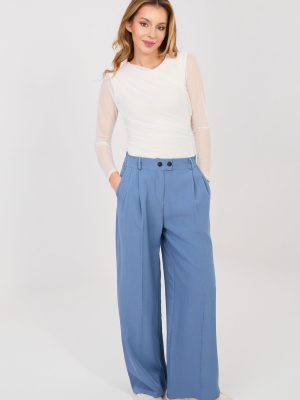 Τα κομψά γυναικεία παντελόνια τύπου wide leg είναι μια εξαιρετική επιλογή για καθημερινές περιστάσεις, στη δουλειά και σε πιο επίσημες εκδηλώσεις. Κατασκευασμένα από υψηλής ποιότητας πολυέστερ με πρόσθετο ελαστάν, προσφέρουν άνεση φορώντας, ανθεκτικότητα και απαλή ελαστικότητα που επιτρέπει ελευθερία κινήσεων. Το λείο ύφασμα τους προσδίδει κλασικό και διαχρονικό χαρακτήρα. Το μοντέλο με υψηλή μέση αναδεικνύει υπέροχα τη μέση και οπτικά επιμηκύνει τη σιλουέτα, ενώ τα μακριά, φαρδιά πόδια προσδίδουν στην εμφάνιση ελαφρότητα και κομψότητα. Τα παντελόνια κλείνουν με φερμουάρ και κουμπιά, εξασφαλίζοντας καλή εφαρμογή. Οι πρακτικές, πλάγιες τσέπες αυξάνουν τη λειτουργικότητα και την άνεση χρήσης. Συμπληρώνουν άψογα τόσο με πουκάμισο και σακάκι, όσο και με πιο casual μπλούζα.