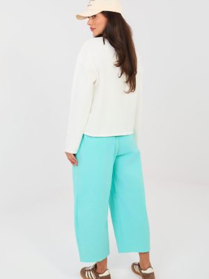 Μοντέρνα γυναικεία jeans παντελόνια τύπου wide leg, που συνδυάζουν την άνεση με τον σύγχρονο στυλ. Κατασκευασμένα από βαμβάκι υψηλής ποιότητας με προσθήκη ελαστάνης, διασφαλίζουν άνεση κατά την φθορά και ελευθερία κινήσεων καθ’ όλη τη διάρκεια της ημέρας. Το μοντέλο διαθέτει ψηλή μέση και ενσωματωμένη ελαστική ζώνη, χάρη στην οποία προσαρμόζεται ιδανικά στη σιλουέτα χωρίς την ανάγκη κουμπώματος. Οι πτυχώσεις στο μπροστινό μέρος προσθέτουν κομψότητα και οπτικά αδυνατίζουν τα πόδια. Οι φαρδιές γραμμές τονίζουν τον μοντέρνο χαρακτήρα του παντελονιού και προσφέρουν ελαφρότητα στη στυλιστική επιλογή. Τα παντελόνια είναι εξοπλισμένα με πλευρικές, τσέπες τύπου slip και ζώνη που κλείνει, αποτελώντας πρακτικό και στυλάτο αξεσουάρ. Το λείο σχέδιο διασφαλίζει ότι το μοντέλο είναι ιδανικό τόσο για καθημερινές στυλιστικές προτάσεις, όσο και για εργασία σε casual εκδοχή. Καθολικά, άνετα και στυλάτα, αποτελούν την ιδανική βάση για πολλές συνθέσεις.