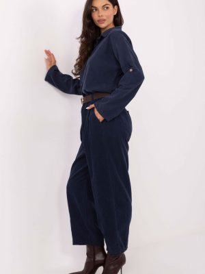 Άνετο και στυλάτο γυναικείο παντελόνι από τσόχα με φαρδιά γραμμή, ιδανικό για καθημερινή χρήση. Κατασκευασμένο από μαλακό πολυέστερ, προσφέρει άνεση κατά τη διάρκεια της χρήσης και ελευθερία κινήσεων. Το μοντέλο διαθέτει ψηλή μέση με ραμμένο λάστιχο στη μέση, που το κάνει να ταιριάζει τέλεια στη σιλουέτα και να υπογραμμίζει τη μέση. Το παντελόνι έχει πλάγιες, βαλμένες τσέπες και ανοιχτές τσέπες στο πίσω μέρος, προσθέτοντας πρακτικότητα. Το σύνολο ολοκληρώνεται με ζώνη που κλείνει στη μέση, αποτελώντας μια κομψή και λειτουργική λεπτομέρεια. Το λείο υλικό και οι φαρδιές ίνες του δίνουν ελαφρότητα και αδιαφορία, ιδανικά για casual και καθημερινές στυλ, τόσο με μια κομψή πουκάμισο όσο και με ένα χαλαρό T-shirt.