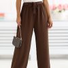 Τα παντελόνια γυναικείας γραμμής wide leg είναι μια κομψή και άνετη πρόταση για καθημερινή χρήση. Το μοντέλο με φαρδιές κόθορες μήκους 7/8 προσφέρει ελαφρότητα και μοντέρνο χαρακτήρα στην σιλουέτα, καταφέρνοντας να ταιριάζει τέλεια σε καθημερινές εμφανίσεις. Το απαλό σχέδιο τονίζει την ευελιξία του παντελονιού, διευκολύνοντας τον συνδυασμό του με διάφορα στοιχεία ντουλάπας, από απλά tops μέχρι κομψά πουκάμισα. Η ψηλή μέση αναδεικνύει όμορφα τη μέση, ενώ η ζώνη στο μέσο και η επιπλέον ζώνη για γύρισμα επιτρέπουν την τέλεια προσαρμογή και προσθέτουν γυναικεία γοητεία στο σύνολο. Τα παντελόνια είναι φτιαγμένα από ευχάριστο στην αίσθηση μείγμα ραγιόν και ελαστάνης, εξασφαλίζοντας άνεση, ελαστικότητα και καλή προσαρμογή στη σιλουέτα. Η απουσία τσέπης ενισχύει τον μινιμαλιστικό και κομψό χαρακτήρα του μοντέλου. Είναι μια εξαιρετική επιλογή για γυναίκες που εκτιμούν τον συνδυασμό άνεσης με μοντέρνο και διαχρονικό στυλ.