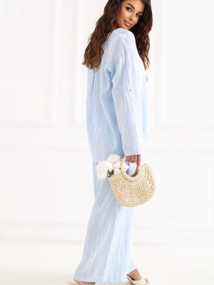 Γυναικείο παντελόνι σε φαρδύ στυλ που συνδυάζει άνεση με μοντέρνο, χαλαρό στυλ. Το μοντέλο διαθέτει φαρδιές γραμμές, προσφέροντας πλήρη ελευθερία κινήσεων και τέλεια ταιριάζει με τις τρέχουσες τάσεις. Τα παντελόνια είναι κατασκευασμένα από υψηλής ποιότητας βαμβάκι, το οποίο είναι απαλό, αεριζόμενο και ευχάριστο στην επιδερμίδα, κάνοντάς τα ιδανικά για καθημερινή χρήση. Το απλό σχέδιο αναδεικνύει τον универсалισμό τους και διευκολύνει την προσαρμογή σε πολλές στυλιστικές επιλογές. Το μοντέλο με ψηλή μέση αναδεικνύει όμορφα τη μέση, ενώ η ρύθμιση στη μέση επιτρέπει άνετη προσαρμογή στη σιλουέτα. Ένα επιπλέον πλεονέκτημα είναι οι πρακτικές πλαϊνές τσέπες, που αυξάνουν τη λειτουργικότητα των παντελονιών. Είναι μια εξαιρετική πρόταση τόσο για casual όσο και για πιο κομψά σύνολα.