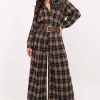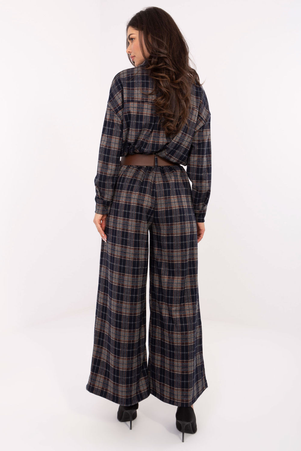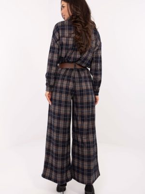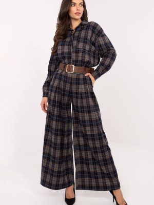 Μοντέρνα και άνετα γυναικεία παντελόνια φλις palazzo με χαλαρό χαρακτήρα, ιδανικά για καθημερινές στυλιστικές επιλογές. Κατασκευασμένα από υψηλής ποιότητας μείγμα πολυεστέρα, βισκόζης και ελαστάνης, προσφέρουν άνεση, ελαφρότητα και λεπτή ελαστικότητα, γεγονός που τους επιτρέπει να προσαρμόζονται τέλεια στη σιλουέτα. Το μοντέλο έχει υψηλή μέση και φαρδιές κνήμες τύπου palazzo, οι οποίες οπτικά επιμηκύνουν τα πόδια και προσφέρουν ελαφρότητα στη σιλουέτα. Οι πλάγιες, εισερχόμενες τσέπες και η κούμπωμα ζώνης προσθέτουν πρακτικότητα και επιτρέπουν την υπογράμμιση της μέσης. Τα παντελόνια διαθέτουν καρό σχέδιο, το οποίο εισάγει μια κλασική, διαχρονική νότα, ενώ η απουσία κλεισίματος τα καθιστά εξαιρετικά άνετα και εύκολα στη χρήση. Πρόκειται για ένα καθολικό μοντέλο, το οποίο θα αποδειχθεί εξαιρετικό τόσο σε καθημερινές, χαλαρές στυλιστικές επιλογές όσο και σε πιο κομψές συνθέσεις για τη δουλειά.