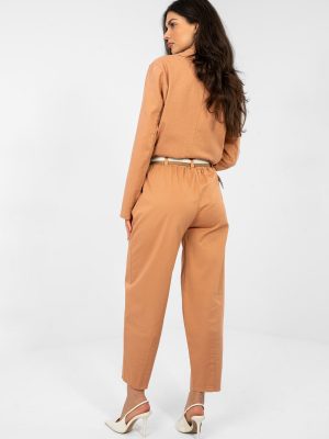 Άνετο και στιλάτο παντελόνι σε σχέδιο καρότο, ιδανικό για καθημερινές, casual στυλιστικές επιλογές. Κατασκευασμένο από υψηλής ποιότητας βαμβάκι με προσθήκη ελαστάνης, που εξασφαλίζει άνεση και ελαφρότητα στη χρήση καθώς και λεπτή ελαστικότητα. Το παντελόνι έχει ψηλή μέση, με κωνικές γάμπες που φτάνουν στο μήκος 7/8, προσδίδοντας μοντέρνα χαρακτήρα. Στη μέση υπάρχει ραμμένο λάστιχο, και επιπλέον το παντελόνι είναι εφοδιασμένο με ζώνη που κλείνει, επιτρέποντας την ιδανική εφαρμογή. Οι πρακτικές πλαϊνές τσέπες αυξάνουν τη λειτουργικότητα, ενώ το λείο σχέδιο διευκολύνει τη σύνδεση με διάφορα στοιχεία της γκαρνταρόμπας. Αυτό το παντελόνι είναι μια εξαιρετική επιλογή για άτομα που εκτιμούν την άνεση, την ελευθερία κινήσεων και το σύγχρονο casual look.
