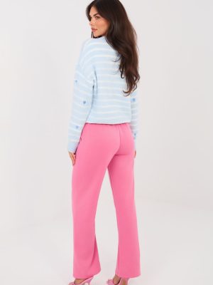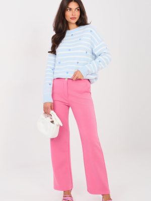 Ελκυστικά γυναικεία παντελόνια από υλικό τύπου straight leg που εντυπωσιάζουν όχι μόνο με την εμφάνισή τους, αλλά και με την άνεση που προσφέρουν. Κατασκευασμένα από ένα ιδιαίτερα ευχάριστο υλικό, όπως το μαλακό βούτυρο, απαλό και λεία, παρέχουν μια πολυτελή αίσθηση στο δέρμα καθόλη τη διάρκεια της ημέρας. Το μοντέλο με ψηλή μέση τονίζει όμορφα τη μέση και οπτικά επιμηκύνει τη σιλουέτα, ενώ οι ίσιες κνήμες προσδίδουν σε όλη την εμφάνιση έναν διαχρονικό, κομψό χαρακτήρα. Τα παντελόνια κλείνουν με φερμουάρ και κουμπί, προσφέροντας μια κλασική και καλαίσθητη ολοκλήρωση. Οι πλάγιες τσέπες, οι οποίες είναι εσωτερικές, προσθέτουν λειτουργικότητα χωρίς να διαταράσσουν την γραμμή του σχεδίου. Χάρη στο λείο σχέδιο και την προσεκτικά επιλεγμένη μίξη πολυεστέρα, βισκόζας και ελαστάνης, τα παντελόνια είναι ιδανικά για καθημερινές εμφανίσεις, για δουλειά αλλά και για επίσημες περιστάσεις. Είναι μια καθολική βάση για μια κομψή ντουλάπα, άνετη, στυλάτη και πάντα επίκαιρη.