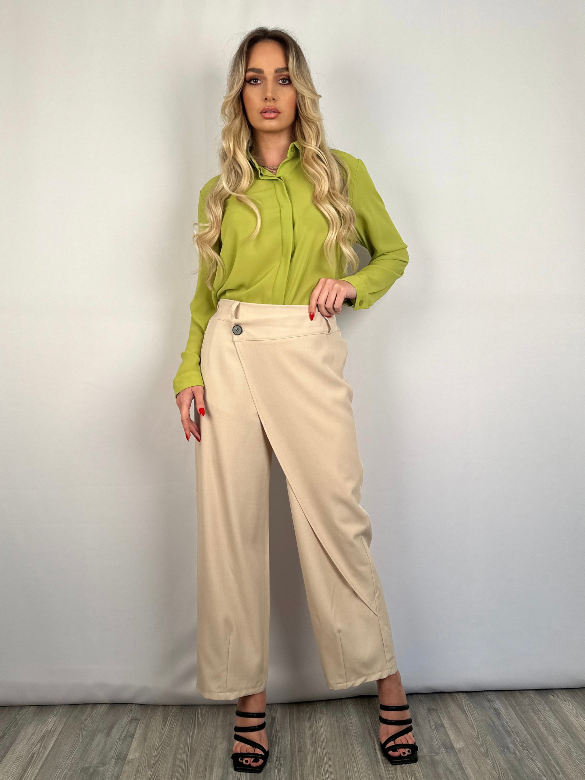 Παντελόνι φάκελος σε μπεζ χρώμα με λάστιχο στο πίσω μέρος και κουμπί μπροστά.