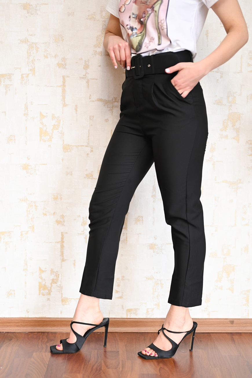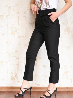 Παντελόνι υφασμάτινο ψηλόμεσο με ζώνη στη μέση σε κανονική γραμμή.