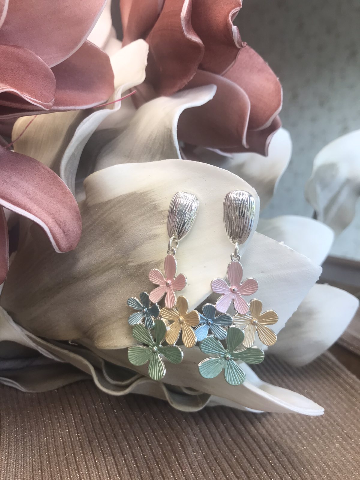 Σκουλαρίκια με λουλούδια σε παστελ συνδυασμό χρωμάτων.