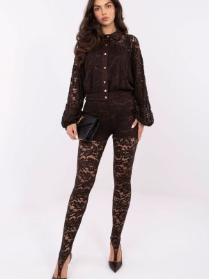 Μια κομψή γυναικεία πουκάμισο από λεπτό δαντέλα είναι μια στυλάτη πρόταση ιδανική για καθημερινή χρήση, για δουλειά, για επισκέψεις και για πάρτι. Το αεράτο σχέδιο της δίνει μια μοναδική, γυναικεία διάσταση, ενώ ο συνδυασμός πολυεστέρα, βισκόζης και ελαστάνης εξασφαλίζει άνεση κατά τη διάρκεια της χρήσης και λεπτή ελαστικότητα του υλικού. Το μοντέλο διαθέτει κλασικό γιακά και μακρύ, φουσκωτό μανίκι που προσθέτει στη συνολική εμφάνιση μια μοντέρνα και εντυπωσιακή αίσθηση. Το πουκάμισο κλείνει με κουμπιά και στο κάτω μέρος έχει ολοκληρωθεί με μια άνετη ελαστική ταινία, γεγονός που εξασφαλίζει ότι αγκαλιάζει όμορφα τη σιλουέτα. Το μπροστινό μέρος του πουκαμίσου είναι εξοπλισμένο με φόδρα, γεγονός που αυξάνει την άνεση και επιτρέπει να διατηρείται η κομψή εμφάνιση παρά τη δομή της δαντέλας. Η πιο κοντή του μήκος της δίνει μια μοντέρνα διάσταση, κάνοντάς την ιδανικό στοιχείο για πολλές στυλιστικές επιλογές, τόσο κομψές όσο και πιο γιορτινές.