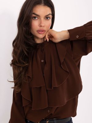 Μια στιλάτη γυναικεία πουκάμισο χωρίς γιακά είναι ένα κλασικό και διαχρονικό στοιχείο της γκαρνταρόμπας που μπορεί να χρησιμοποιηθεί σε πολλές στυλιστικές προτάσεις, τόσο καθημερινές όσο και πιο επίσημες. Κατασκευασμένο από ελαφρύ μείγμα βισκόζης και πολυεστέρα, είναι μαλακό στην αφή, άνετο και εφαρμόζει καλά στο σώμα. Το μοντέλο διαθέτει στρογγυλή λαιμόκοψη και μακρύ μανίκι, και το κλείσιμο με κουμπιά επιτρέπει τη ρύθμιση της άνεσης κατά τη διάρκεια της φοράς. Ο υποκείμενος ζαμπόν στο μπροστινό μέρος προσθέτει μία κομψή αίσθηση στο πουκάμισο και το καθιστά να φαίνεται εξαιρετικά κομψό. Το πουκάμισο έχει κανονικό μήκος και απλό σχέδιο, το οποίο ταιριάζει τέλεια τόσο με παντελόνια όσο και με φούστες, καθώς και για στρωματοποιημένες στυλιστικές προτάσεις κάτω από ένα σακάκι ή ένα πουλόβερ. Είναι η ιδανική επιλογή για καθημερινή χρήση, για τη δουλειά, καθώς και για επίσημες περιστάσεις.