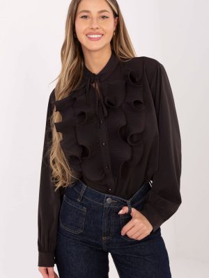 Αυτή η κομψή γυναικεία πουκάμισο σε κλασική γραμμή εντυπωσιάζει με την ιδιαίτερη λεπτομέρεια, την ευρεία, πλισέ ζαμπόν που είναι τοποθετημένη στο μπροστινό μέρος, προσδίδοντας της μια κομψή, επίσημη χροιά. Κατασκευασμένη από λεία πολυεστέρα, παρουσιάζεται άψογα και λειτουργεί εξαιρετικά τόσο στην καθημερινότητα όσο και στην εργασία ή σε πιο επίσημες περιστάσεις. Το μοντέλο έχει κανονικό μήκος και διαθέτει μακρύ, φουσκωτό μανίκι, που προσθέτει μια διακριτική ελαφρότητα και γυναικεία γοητεία. Ο λαιμός με δέσιμο δημιουργεί μια εντυπωσιακή φινέτσα, ενώ το κλασικό κούμπωμα με κουμπιά τονίζει τον διαχρονικό στυλ του πουκάμισου. Είναι η ιδανική πρόταση για γυναίκες που εκτιμούν την κομψότητα σε σύγχρονη έκδοση.
