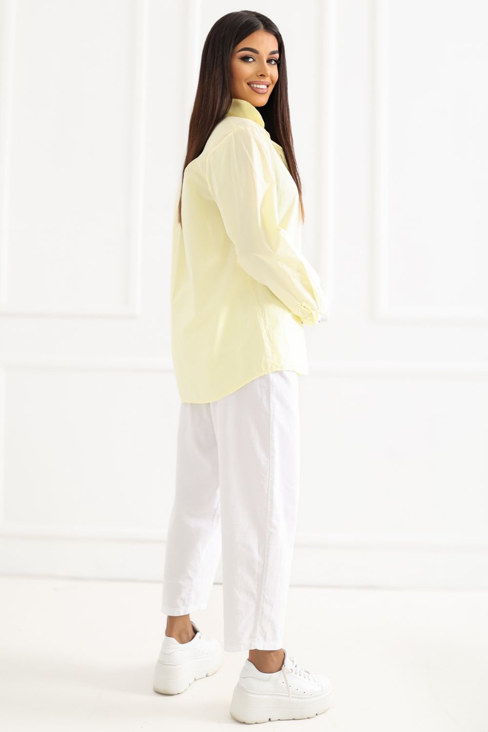 Η κλασική γυναικεία πουκάμισο είναι ένα διαχρονικό κομμάτι της γκαρνταρόμπας, που ταιριάζει τέλεια τόσο για καθημερινές εμφανίσεις όσο και για επαγγελματικά στυλ. Διατηρούμενη σε κομψό στυλ, συνδυάζει την απλότητα και την πολυτέλεια, επιτρέποντάς σας να την προσαρμόσετε εύκολα σε διάφορες περιστάσεις. Το μοντέλο, κατασκευασμένο από υψηλής ποιότητας βαμβάκι, προσφέρει άνεση στη διάρκεια της ημέρας και αναπνευστικότητα, που είναι ιδιαίτερα σημαντική στην καθημερινή χρήση. Το λείο σχέδιο δίνει στην πουκάμισο καθολικό χαρακτήρα, διευκολύνοντας τον συνδυασμό της με άλλα κομμάτια της γκαρνταρόμπας, τόσο με παντελόνια όσο και με φούστες. Η πουκάμισο έχει κανονικό μήκος και μακριά μανίκια, τα οποία τονίζουν την κλασική της γραμμή. Εξοπλισμένη με κομψό γιακά και πρακτικό κούμπωμα με κουμπιά, παρουσιάζεται τακτοποιημένα και επαγγελματικά. Είναι η ιδανική επιλογή για γυναίκες που εκτιμούν την άνεση, το στυλ και τη διαχρονική κομψότητα.