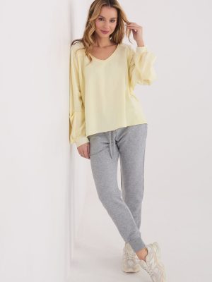 Αυτή είναι μια καθημερινή μπλούζα με casual στυλ, ιδανική για άνετες και κομψές εμφανίσεις. Φτιαγμένη από μαλακό βαμβάκι με προσθήκη ελαστάνης, προσφέρει άνεση κατά τη διάρκεια της χρήσης και καλή εφαρμογή στη σιλουέτα. Το μοντέλο έχει λείο σχέδιο και κανονικό μήκος με V ντεκολτέ που αναδεικνύει διακριτικά τον λαιμό και προσδίδει θηλυκότητα. Οι μακρυές, φουσκωτές μανίκες αποτελούν μια μοντέρνα λεπτομέρεια και προσδίδουν ελαφρότητα στην μπλούζα. Η απουσία κλεισίματος τονίζει την απλότητα του σχεδιασμού και την άνεση χρήσης. Είναι μια εξαιρετική πρόταση για καθημερινές, casual εμφανίσεις.