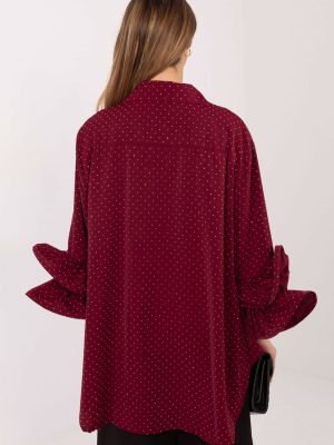 Η κομψή γυναικεία πουκαμίσα με μακρύ πίσω μέρος είναι ένα μοναδικό μοντέλο που συνδυάζει κλασική κοπή με εκλεπτυσμένο, γιορτινό χαρακτήρα. Σχεδιασμένη σε κομψό στυλ, είναι ιδανική για επίσημες περιστάσεις, γάμους, δεξιώσεις, καθώς και για βραδινές εξόδους και πάρτι. Η επιφάνεια της πουκαμίσας διακοσμείται με εφαρμογές από τζετ, δημιουργώντας ένα εντυπωσιακό, γυαλιστερό κυρίαρχο σχέδιο που προσθέτει μια αίσθηση πολυτέλειας σε όλη την εμφάνιση. Το μακρύ σχέδιο με το μακρύ πίσω μέρος απαλά λεπταίνει τη σιλουέτα και παρουσιάζεται εξαιρετικά κομψά. Φτιαγμένη από μείγμα βαμβακιού, ελαστάνης και πολυεστέρα, η πουκαμίσα είναι ταυτόχρονα άνετη στη χρήση, ελαστική και ανθεκτική στις ζαρωμένες. Το μακρύ μανίκι που τελειώνει με φούσκες εισάγει μια γυναικεία και ελαφρώς ρομαντική πινελιά, ενώ το κλασικό γιακάς τονίζει τον επίσημο χαρακτήρα του μοντέλου. Η πουκαμίσα κλείνει με κουμπιά, επιτρέποντας την προσαρμογή του βάθους του ντεκολτέ και διευκολύνει την τοποθέτηση. Είναι η ιδανική πρόταση για γυναίκες που εκτιμούν την κομψότητα αλλά αγαπούν επίσης την λάμψη και τις σύγχρονες λεπτομέρειες. Ιδανική για ειδικές περιστάσεις και στυλάτες εξόδους.