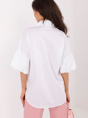 Η γυναικεία καλοκαιρινή μπλούζα είναι ένα универсальный элемент гардеробы, который подходит как для повседневных образов, так и для работы, а также для визитных случаев. Το κλασικό, ομαλό σχέδιο της προσδίδει κομψότητα και διαχρονικότητα, έτσι ώστε είναι εύκολο να την συνδυάσεις με διάφορα στυλ. Το μοντέλο είναι κατασκευασμένο από ένα μείγμα βαμβακιού και ελαστάνης, που προσφέρει αναπνευστικότητα, απαλότητα και ελαφριά ελαστικότητα, επιτρέποντας στο πουκάμισο να προσαρμοστεί τέλεια στην σιλουέτα και να εγγυηθεί άνεση κατά τη διάρκεια της ημέρας. Το πουκάμισο διαθέτει κανονικό μήκος και κουμπάκι, που διευκολύνει την τοποθέτηση και επιτρέπει τη ρύθμιση της φιγούρας. Τα μανίκια 3/4 σε μορφή φαλτσέτας προσθέτουν μια διακριτική, θηλυκή έμφαση και ελαφρότητα σε ολόκληρη την σιλουέτα. Είναι η ιδανική επιλογή για γυναίκες που εκτιμούν την άνεση, την κομψότητα και τον универсальный стиль σε ένα.