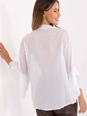 Μια κομψή και θηλυκή κλασική πουκαμίσα είναι ένας συνδυασμός κομψότητας και άνεσης, ιδανική τόσο για τη δουλειά όσο και για καθημερινές, επίσημες περιστάσεις. Κατασκευασμένη από υψηλής ποιότητας βαμβάκι, εξασφαλίζει άνεση στη χρήση και εξαιρετή διαπνοή καθ’ όλη τη διάρκεια της ημέρας. Το μοντέλο με κανονικό μήκος έχει μανίκια 3/4 που καταλήγουν σε λεπτές βολάν, προσθέτοντας του μια διακριτική, ρομαντική αίσθηση. Ο στρογγυλός λαιμός και το κλείσιμο με κουμπιά τονίζουν το κλασικό στυλ της πουκαμίσας, ενώ το ρεντό στο μπροστινό μέρος αποτελεί μια κομψή λεπτομέρεια, προσδίδοντας στο σύνολο μια μοναδική γοητεία. Ο λεία σχέδιο κάνει την πουκαμίσα να συνδυάζεται τέλεια με κομψά παντελόνια, φούστα ή σακάκι, δημιουργώντας μια στυλάτη εμφάνιση για το γραφείο ή για επαγγελματικές συναντήσεις.