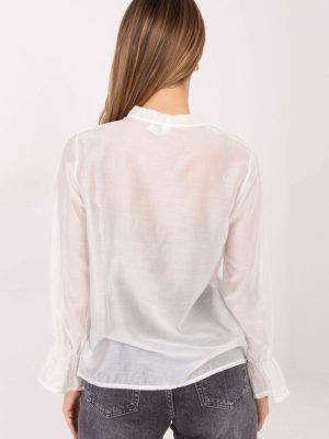 Ελκυστικός γυναικείος πουκάμισο χωρίς γιακά, ιδανικό για καθημερινή χρήση, στη δουλειά και για πιο επίσημες περιστάσεις. Κατασκευασμένο από υψηλής ποιότητας μίγμα tencel και πολυεστέρα, χάρη στο οποίο είναι μαλακό, αεριζόμενο και ευχάριστο στην αφή, ενώ ταυτόχρονα αποκτά κομψή γραμμή. Το μοντέλο έχει κανονικό μήκος και παρουσιάζει ένα ομαλό, κλασικό σχέδιο που υπογραμμίζει τον διαχρονικό του χαρακτήρα. Ο λαιμός σε σχήμα V προσθέτει γυναικεία ελαφρότητα, ενώ το μπροστινό μέρος διακοσμείται με μια διακριτική δαντέλα, που προσθέτει μια κομψή, ρομαντική αίσθηση. Το πουκάμισο έχει φουσκωτά μανίκια, τελειωμένα με εντυπωσιακή δαντέλα, που δίνει σε όλη την εικόνα μια μοναδική στυλιστική διάσταση. Το κλείσιμο με κουμπιά υπογραμμίζει τον κλασικό χαρακτήρα του πουκαμίσου, ενώ ταυτόχρονα διατηρεί την λεπτή και κομψή γραμμή του. Είναι η ιδανική επιλογή για γυναίκες που εκτιμούν τον εκλεπτυσμένο στυλ σε συνδυασμό με την άνεση και διακριτικές, μοντέρνες λεπτομέρειες.