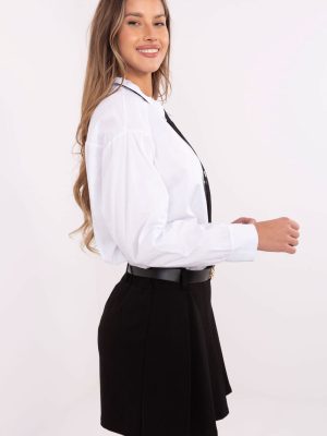Casual γυναικείο πουκάμισο με ευέλικτο κόψιμο, ιδανικό για καθημερινή χρήση. Κατασκευασμένο από συνδυασμό βαμβακιού και ελαστάνης, προσφέρει άνεση και τέλεια εφαρμογή. Το απαλό ύφασμα καθιστά το πουκάμισο μια ευέλικτη βάση για μια ποικιλία από σύνολα. Το μοντέλο διαθέτει κλασικό γιακά και κούμπωμα με κουμπιά, δίνοντάς του μια διαχρονική αίσθηση. Το κανονικό μήκος και τα μακριά μανίκια καθιστούν το πουκάμισο μια πρακτική επιλογή για όλες τις εποχές. Μοναδικά στοιχεία, όπως η αφαιρούμενη γραβάτα, σας επιτρέπουν να εξατομικεύσετε και να προσαρμόσετε το πουκάμισο σε διαφορετικές περιστάσεις. Προσθέστε μια γραβάτα για να ενισχύσετε ένα πρωτότυπο στυλ ή αφαιρέστε την για μια πιο casual εμφάνιση. Ιδανικό για τις γυναίκες που εκτιμούν την κλασική κομψότητα με μια casual πινελιά.