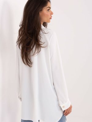 Η κλασική γυναικεία πουκάμισο σε κομψό στυλ είναι η ιδανική πρόταση για κάθε μέρα, για τη δουλειά και για επίσημες περιστάσεις. Η ομαλή υφή της τονίζει τον διαχρονικό χαρακτήρα της και η προσεγμένη κατασκευή της την καθιστά ιδανική για πολλές ποικιλόμορφες στιλιστικές επιλογές. Το μοντέλο είναι φτιαγμένο από ελαφρύ, ευχάριστο στην αφή πολυεστέρα, ο οποίος εφαρμόζει καλά στη σιλουέτα. Η επιμηκυμένη γραμμή και οι λεπτές σχισμές στις πλευρές προσδίδουν στο πουκάμισο σύγχρονη εμφάνιση και εξασφαλίζουν ελευθερία κινήσεων. Το πουκάμισο διαθέτει μακρύ μανίκι που καταλήγει σε απαλό μανίκι και φουσκωτά μανίκια, τα οποία προσθέτουν μια μοντέρνα, εκφραστική πινελιά στο σύνολο. Ο κλασικός γιακάς και το κλείσιμο με κουμπιά τονίζουν τον κομψό χαρακτήρα του μοντέλου. Είναι ένα στιλάτο και λειτουργικό πουκάμισο, ιδανικό για γυναίκες που εκτιμούν τον συνδυασμό της κλασικής αισθητικής με σύγχρονες λεπτομέρειες.