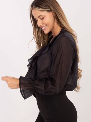 Κομψό γυναικείο πουκάμισο χωρίς γιακά, ιδανικό για καθημερινή χρήση, για εργασία και για πιο επίσημες περιστάσεις. Κατασκευασμένο από υψηλής ποιότητας μείγμα τενσέλ και πολυεστέρα, προσφέρει απαλότητα, διαπνοή και ευχάριστη αίσθηση στην επαφή, ενώ ταυτόχρονα έχει κομψή πτώση. Το μοντέλο έχει κανονικό μήκος και παρουσιάζει μια λεία, κλασική διακόσμηση, που τονίζει τον διαχρονικό του χαρακτήρα. Ο λαιμός σε σχήμα V προσθέτει γυναικεία ελαφρότητα, ενώ το μπροστινό μέρος διακοσμείται με έναν λεπτό γαλλικό ϕραγκοσυριανό, που εισάγει μια κομψή, ρομαντική πινελιά. Το πουκάμισο διαθέτει φουσκωτούς ώμους, τελειωμένο με εντυπωσιακές ρικουσέτες, προσθέτοντας σε όλη την εμφάνιση μοναδικό στυλ. Το κλείσιμο με κουμπιά τονίζει τον κλασικό χαρακτήρα του πουκαμίσου, διατηρώντας ταυτόχρονα την ευαίσθητη, κομψή γραμμή του. Είναι η ιδανική επιλογή για γυναίκες που εκτιμούν τον εκλεπτυσμένο στυλ σε συνδυασμό με άνεση και λεπτές, μοντέρνες λεπτομέρειες.