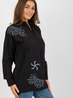 Γυναικείο μακρυμάνικο πουκάμισο με κουμπιά. Το πουκάμισο είναι κεντημένο με ενδιαφέροντα μοτίβα.