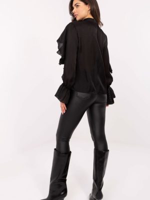 Κλασικό γυναικείο πουκάμισο σε κομψό στυλ, ιδανικό για καθημερινές εμφανίσεις, για δουλειά και για επίσημες περιστάσεις. Ραμμένο από έναν συνδυασμό λιοσέλ και πολυεστέρα, συνδυάζει την άνεση, το ελαφρύ βάρος και την αντοχή. Το μοντέλο έχει κανονικό μήκος με V-λαιμόκοψη και κουμπιά και έχει εμπλουτιστεί με εντυπωσιακό ζαμπόν και λεπτές δαντελωτές λεπτομέρειες μπροστά, που προσθέτουν γυναικεία, κομψή διάσταση στο σύνολο. Οι μακρύι μανίκια που τελειώνουν με δαντέλα υπογραμμίζουν την κομψότητα και τη μοναδικότητα αυτής της πρότασης.
