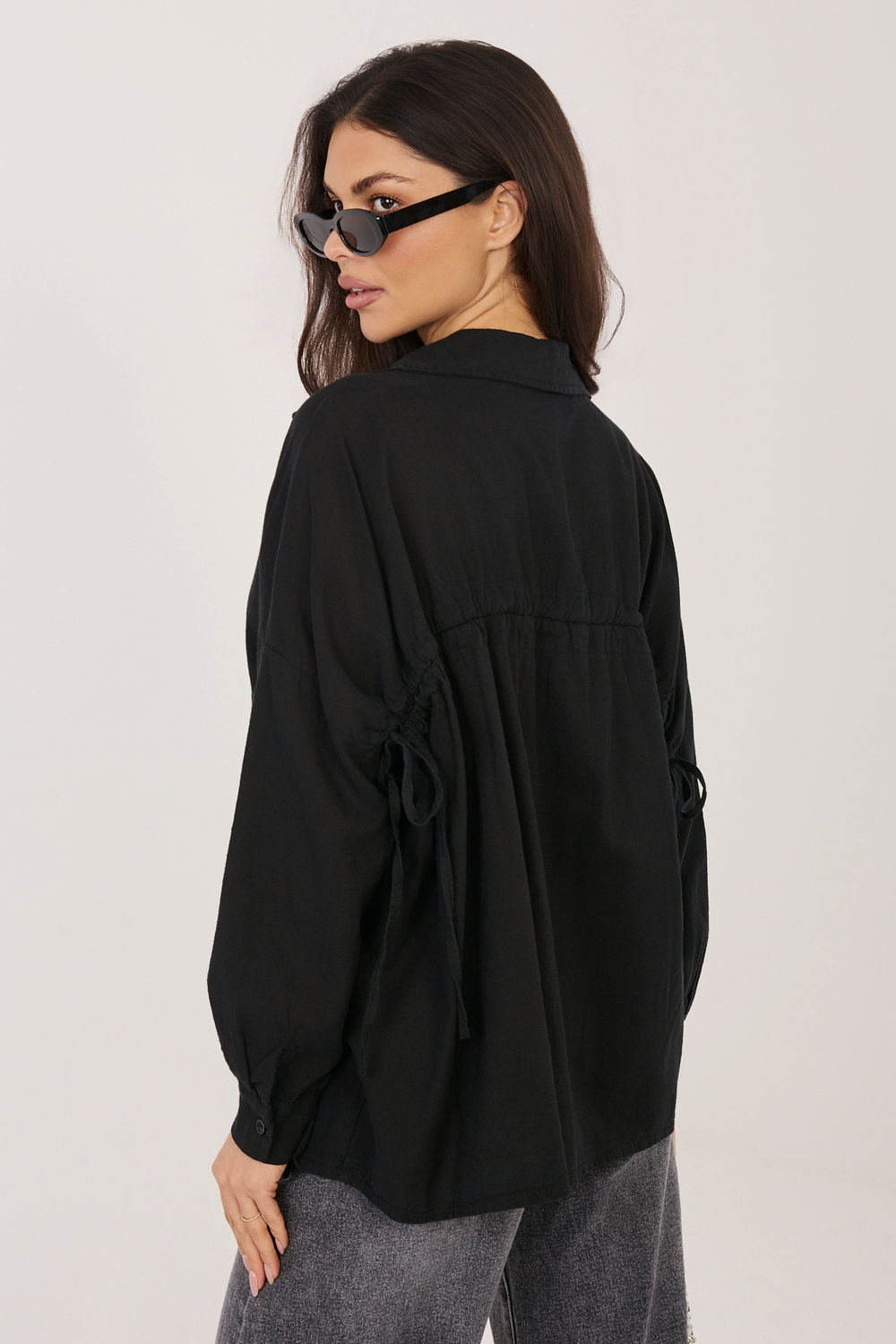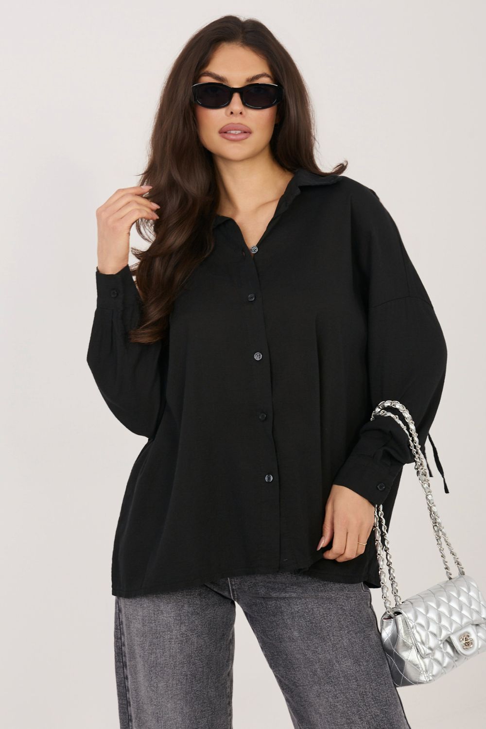 Γυναικεία πουκαμίσα σε casual στυλ, που είναι ιδανική τόσο για καθημερινές εμφανίσεις όσο και για το γραφείο. Η κλασική, λείο σχέδιο καθιστά το μοντέλοuniversral κι εύκολο στο συνδυασμό με διάφορα στοιχεία της γκαρνταρόμπας, από κομψά παντελόνια μέχρι τζιν. Η πουκαμίσα έχει κατασκευαστεί από μείγμα υψηλής ποιότητας λυοσέλ, βαμβακιού και λινά, γεγονός που καθιστά το υλικό ελαφρύ, αεριστό και ευχάριστο στη χρήση. Το κανονικό μήκος επιτρέπει να φοριέται είτε μέσα από παντελόνια ή φούστες, είτε χαλαρά. Το μοντέλο διαθέτει κλασικό γιακά και μακριά μανίκια, που υπογραμμίζουν τον διαχρονικό χαρακτήρα της πουκαμίσας. Ένα πρόσθετο πλεονέκτημα είναι η πρακτική δέσμευση στην πλάτη, η οποία επιτρέπει τη ρύθμιση του πλάτους της πουκαμίσας και την καλύτερη προσαρμογή στη σιλουέτα, ενώ ταυτόχρονα προσθέτει μια διακριτική, γυναικεία αίσθηση.