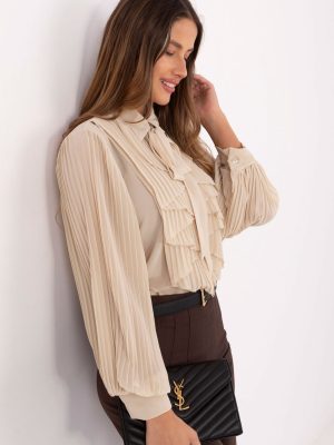 Μια κομψή και γυναικεία πουκαμίσα που ταιριάζει τέλεια τόσο για καθημερινή χρήση, όσο και για την εργασία, καθώς και για επίσημες περιστάσεις. Κατασκευασμένη από υψηλής ποιότητας μείγμα πολυεστέρα και ελαστάνης, είναι ελαφριά, ελαστική και ευχάριστη στην αφή, διασφαλίζοντας άνεση κατά τη διάρκεια όλης της ημέρας. Το μοντέλο διαθέτει κλασικό γιακά και κουμπί που του προσδίδει κομψό, διαχρονικό χαρακτήρα. Η προσοχή τραβά ο πλισέ ζαμπόν με κόμπο μπροστά, που αποτελεί εντυπωσιακή, γυναικεία λεπτομέρεια. Οι μακριές, πλισέ μανσέτες προσθέτουν διακριτική ποικιλία στο σύνολο και δίνουν στην πουκαμίσα εξαιρετική κομψότητα. Χάρη στην ομαλή ύφανση και το στάνταρ μήκος, η πουκαμίσα φαίνεται εξαιρετική τόσο σε συνδυασμό με φούστα όσο και με παντελόνια, δημιουργώντας ένα στυλάτο σύνολο για το γραφείο ή για ειδικές περιστάσεις.