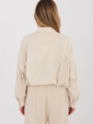 Γυναικεία πουκάμισο σε casual στυλ, που ταιριάζει τέλεια τόσο σε καθημερινές στυλιστικές επιλογές όσο και στη δουλειά. Το κλασικό, ομαλό σχέδιο καθιστά το μοντέλο καθολικό και εύκολο στην συνδυαστικότητα με διάφορα στοιχεία της γκαρνταρόμπας, από κομψά παντελόνια έως τζιν. Το πουκάμισο έχει κατασκευαστεί από υψηλής ποιότητας μείγμα από λυοκέλλη, βαμβάκι και λινό, γεγονός που το καθιστά ελαφρύ, αεράτο και ευχάριστο στην ανώτερη χρήση. Το κανονικό μήκος επιτρέπει να φορεθεί είτε μέσα από παντελόνια ή φούστες, είτε χαλαρά. Το μοντέλο διαθέτει κλασικό γιακά και μακριά μανίκια, που τονίζουν τον διαχρονικό χαρακτήρα του πουκαμίσου. Ένα επιπλέον πλεονέκτημα είναι η πρακτική δέσιμο στην πλάτη, που επιτρέπει τη ρύθμιση του πλάτους του πουκαμίσου και καλύτερη εφαρμογή στο σχήμα του σώματος, προσδίδοντας ταυτόχρονα μια διακριτική, θηλυκή αίσθηση.