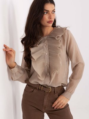 Κομψό γυναικείο πουκάμισο κλασικού τύπου, ιδανικό για καθημερινή χρήση, για τη δουλειά και για πιο επίσημες περιστάσεις. Κατασκευασμένο από υψηλής ποιότητας μείγμα τενσέλ και πολυεστέρα, προσφέρει απαλότητα, ελαφρότητα και άνεση στην εφαρμογή, ενώ ταυτόχρονα δίνει στο πουκάμισο μια κομψή, κλασική εμφάνιση. Το μοντέλο με κανονικό μήκος διαθέτει ομαλό σχέδιο που αναδεικνύει το διαχρονικό του στυλ. Ο στρογγυλός λαιμός εκθέτει διακριτικά το λαιμό, ενώ το μπροστινό μέρος διακοσμείται από φρου-φρου που συνδέεται με τον γιακά, κατασκευασμένο από το ίδιο υλικό που είναι και το φρου-φρου, προσθέτοντας στο πουκάμισο μια μοναδική κομψότητα και στυλ. Το πουκάμισο διαθέτει μακριά μανίκια που τελειώνουν με μανσέτα και κλείσιμο με κουμπιά, υπογραμμίζοντας τον κλασικό του χαρακτήρα και διευκολύνοντας την προσαρμογή σε διάφορες στιλιστικές επιλογές. Είναι μια πρόταση για γυναίκες που εκτιμούν την κομψότητα σε συνδυασμό με την άνεση και τις διακριτικές, διακοσμητικές λεπτομέρειες στην καθημερινή και επίσημη ενδυμασία.