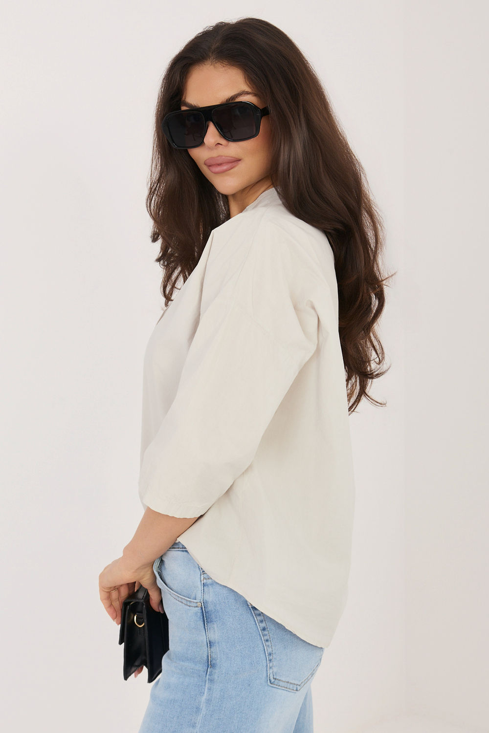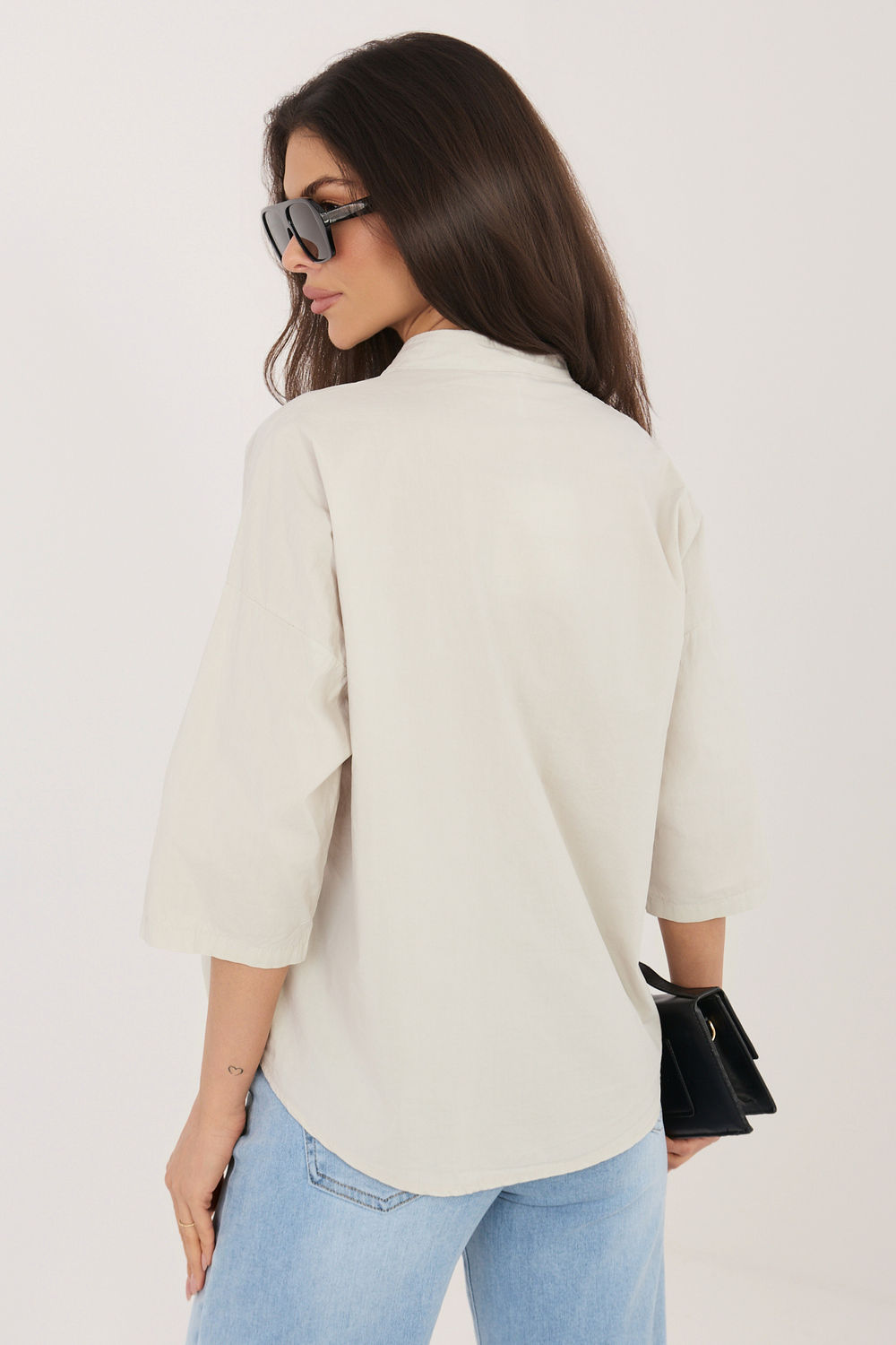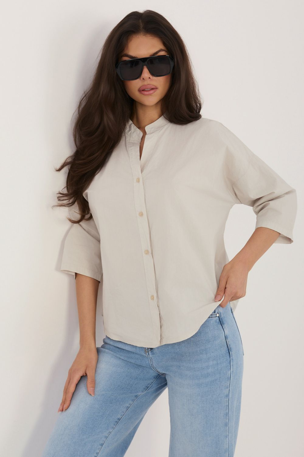 Το γυναικείο πουκάμισο κλασικής γραμμής είναι μια κομψή και πολυδιάστατη πρόταση, ιδανική τόσο για καθημερινές όσο και για επαγγελματικές εμφανίσεις. Το λείο σχέδιο του προσδίδει διαχρονικό χαρακτήρα, διευκολύνοντας έτσι την προσαρμογή του σε διάφορα στυλ, από το casual έως το πιο επίσημο. Το μοντέλο με την κοντή μήκος συνδυάζεται εξαιρετικά με παντελόνια με ψηλή μέση ή φούστες, αναδεικνύοντας τις αναλογίες του σώματος. Το πουκάμισο που κουμπώνει με κουμπιά εξασφαλίζει άνεση και πρακτικότητα, ενώ η διακριτική γιακάς σε συνδυασμό με ντεκολτέ σε σχήμα V προσδίδει ένα σύγχρονο και θηλυκό look. Το μανίκι τρία τέταρτα είναι μια εξαιρετική λύση για τις πιο ζεστές μέρες ή για εργασία σε εσωτερικούς χώρους, παρέχοντας άνεση και ελευθερία κινήσεων. Κατασκευασμένο από υψηλής ποιότητας βαμβάκι, το πουκάμισο είναι ευχάριστο για το δέρμα, αεράτο και άνετο στη φορεσιά καθ’ όλη τη διάρκεια της ημέρας. Είναι ένα στιλάτο και λειτουργικό κομμάτι της γκαρνταρόμπας που θα αποδειχθεί χρήσιμο σε πολλές καθημερινές και επαγγελματικές εμφανίσεις.