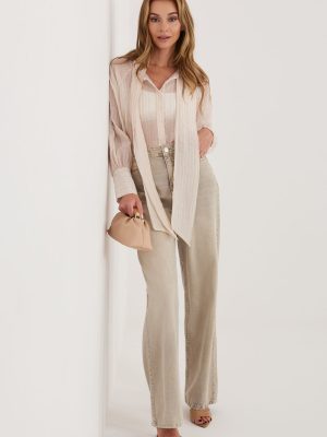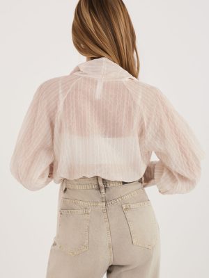 Κοντομάνικο γυναικείο πουκάμισο με κλασική γραμμή, που είναι ιδανικό τόσο για καθημερινές περιστάσεις όσο και για επαγγελματικά ή πιο επίσημα γεγονότα. Το μοντέλο έχει κανονικό μήκος και κλείνει με κουμπιά, συνδυάζοντας την διαχρονική κομψότητα με σύγχρονες λεπτομέρειες. Κατασκευασμένο από ένα ευχάριστο μίγμα λυοκελ και πολυεστέρα, προσφέρει άνεση και αντοχή. Το ύφασμα είναι διακοσμημένο με διακριτό σχέδιο σε λεπτές ρίγες, που προσθέτει ελαφρότητα και στυλ στο σύνολο. Το πουκάμισο διακρίνεται για τα μπούστα μανίκια του που τελειώνουν σε φαρδιές μανσέτες, προσδίδοντας ένταση στη σιλουέτα. Ένα επιπλέον πλεονέκτημα είναι η δέσιμο στον λαιμό, που επιτρέπει τη δημιουργία ενός κομψού φιόγκου ή ενός χαλαρού δέσιμου ανάλογα με την περίσταση.