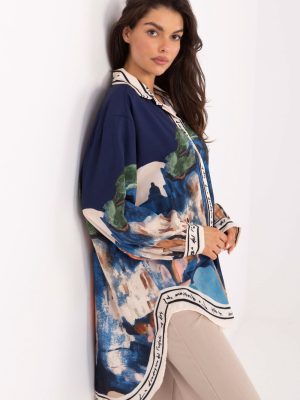 Γυναικεία πουκάμισα σε casual στυλ, ιδανικά για καθημερινή χρήση και για το γραφείο. Κατασκευασμένο από ένα ελαφρύ και ευχάριστο στην αφή μείγμα βισκόζης και πολυεστέρα, εγγυάται άνεση κατά τη διάρκεια όλης της ημέρας. Μοντέλο με μακρύτερη γραμμή, κλασικό γιακά και μακρυά μανίκια που κλείνουν με κουμπιά, κρυμμένα κάτω από μια κομψή λωρίδα. Σε όλη την επιφάνεια του υφάσματος υπάρχει εκτύπωση, ενώ πρόσθετες λεπτομέρειες σε μορφή κειμένου στον γιακά, τη λωρίδα και γύρω από το τελείωμα προσδίδουν στο πουκάμισο έναν σύγχρονο, μοναδικό χαρακτήρα. Αυτή είναι μια πρόταση για γυναίκες που εκτιμούν την άνεση συνδυασμένη με έναν πρωτότυπο στυλ.
