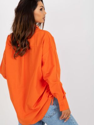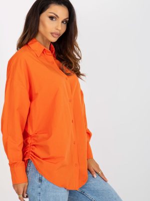 Γυναικείο πουκάμισο σε απλή φαρδιά γραμμή με μακριά μανίκια, κουμπωμένο. Γραβάτες στα πλάγια.