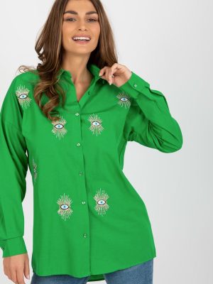 Γυναικείο μακρυμάνικο πουκάμισο με κουμπιά. Το πουκάμισο είναι κεντημένο με ενδιαφέροντα μοτίβα.