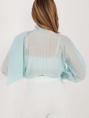 Γυναικεία πουκάμισο σε κλασική γραμμή, που ταιριάζει τέλεια τόσο για καθημερινή χρήση, όσο και για πιο επίσημες περιστάσεις. Το μοντέλο έχει κανονικό μήκος και κλείνει με κουμπιά, συνδυάζοντας διαχρονική κομψότητα με σύγχρονες λεπτομέρειες. Είναι φτιαγμένο από ένα ευχάριστο μείγμα λυοσελ και πολυεστέρα, το οποίο εξασφαλίζει άνεση και ανθεκτικότητα. Το ύφασμα είναι διακοσμημένο με διακριτό σχέδιο σε λεπτές ρίγες, που προσθέτει ελαφρότητα και στυλ. Το πουκάμισο διακρίνεται για τα φουσκωτά μανίκια που τελειώνουν σε φαρδιά μανσέτα, προσδίδοντας στην σιλουέτα ένταση. Επιπλέον πλεονέκτημα είναι η δέσιμο στον λαιμό, που επιτρέπει τη δημιουργία μιας κομψής φιόγκου ή ενός χαλαρού δέσιμου ανάλογα με την περίσταση.