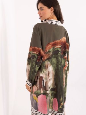 Γυναικεία μπλούζα σε casual στυλ, ιδανική για καθημερινή χρήση καθώς και για τη δουλειά. Κατασκευασμένη από ένα ελαφρύ και ευχάριστο στην αφή μείγμα βισκόζης και πολυεστέρα, εξασφαλίζει άνεση κατά την διάρκεια όλης της ημέρας. Μοντέλο με πιο μακρύ κόψιμο, με κλασικό γιακά και μακριά μανίκια με κουμπιά, κρυμμένα κάτω από μια κομψή ραφή. Σε όλη την επιφάνεια του υφάσματος υπάρχει εκτύπωση, ενώ επιπλέον λεπτομέρειες με τη μορφή κειμένων στον γιακά, στην ραφή και γύρω από το κάτω μέρος δίνουν στην μπλούζα ένα σύγχρονο, μοναδικό χαρακτήρα. Είναι μια πρόταση για γυναίκες που εκτιμούν την άνεση σε συνδυασμό με πρωτότυπο στυλ.