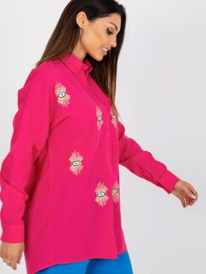 Γυναικείο μακρυμάνικο πουκάμισο με κουμπιά. Το πουκάμισο είναι κεντημένο με ενδιαφέροντα μοτίβα.