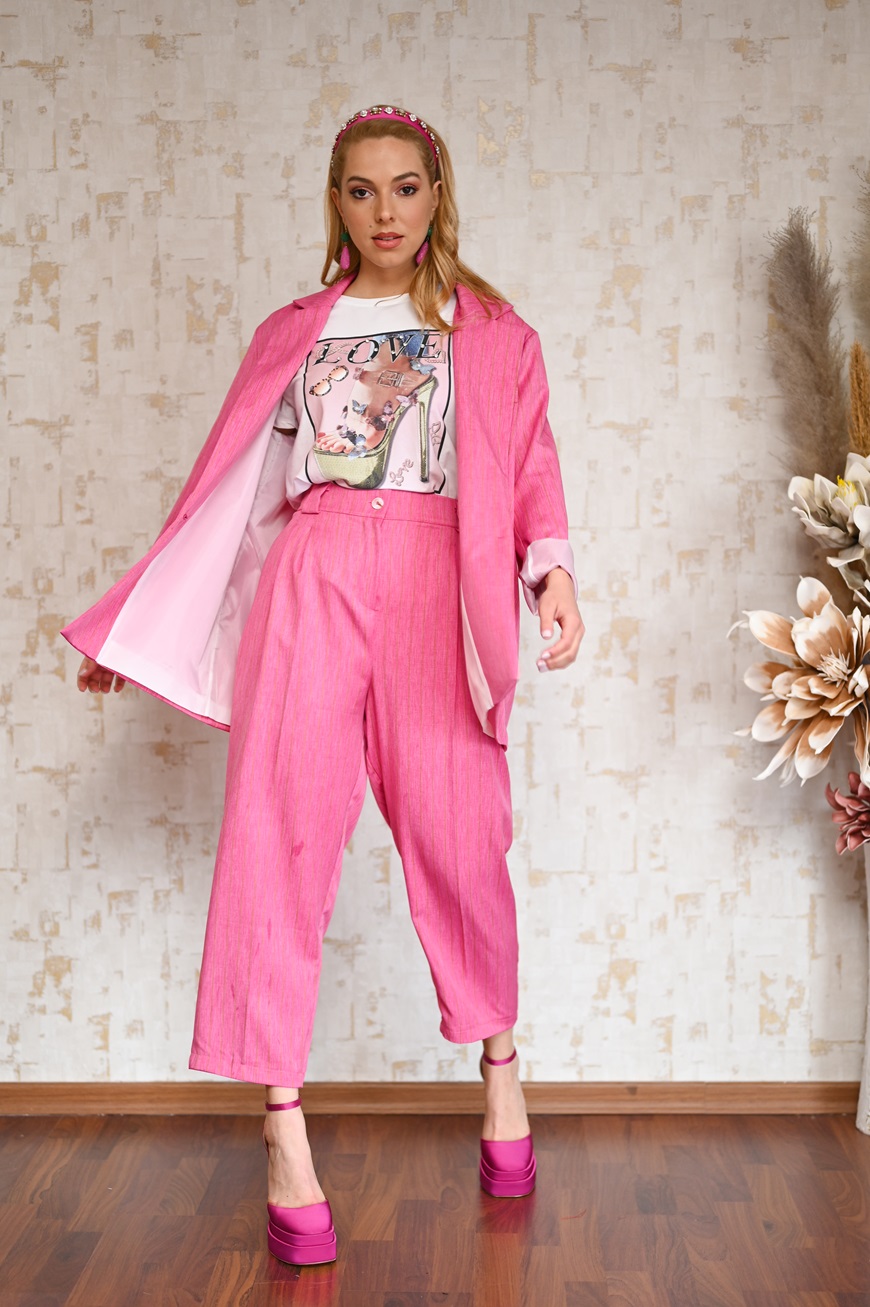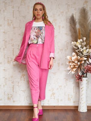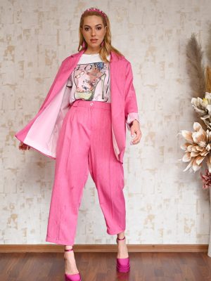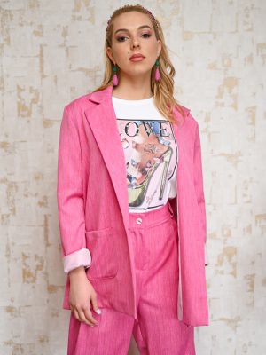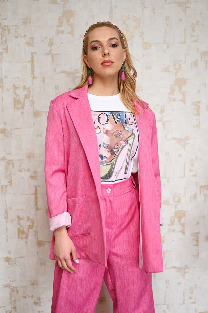 Σακάκι ριγέ σε φούξια χρώμα, φοδραρισμένο, σε άνετη γραμμή με τσέπες στο μπροστινό μέρος
