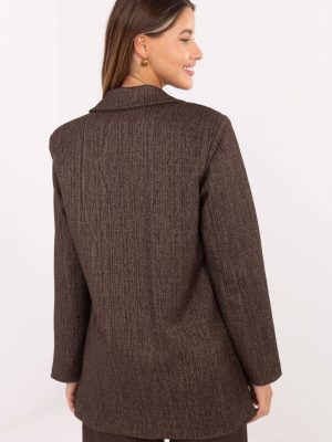 Μια κομψή και διαχρονική γυναικεία σακάκι με κλασική γραμμή, ιδανική για επίσημες περιστάσεις και για τη δουλειά. Ραμμένο από μείγμα υψηλής ποιότητας πολυεστέρα, βισκόζης και ελαστάνης, χάρη στο οποίο κάθεται τέλεια, προσφέρει άνεση και ελαφρώς προσαρμόζεται στη σιλουέτα. Το μοντέλο έχει κανονικό μήκος και μακριά μανίκια, ενώ η κατασκευή του τονίζεται από ενσωματωμένα μαξιλαράκια στους ώμους, που δίνουν στη φόρμα μια κομψή, ελαφρώς υπογραμμισμένη μορφή. Τα πέτα και οι μιμήσεις τσεπών προσθέτουν κλάση και στιλ, ενώ το κούμπωμα με έναν μόνο κουμπί τονίζει κομψά τη μέση. Το σακάκι είναι επενδυμένο, εξασφαλίζοντας άνεση και τέλειο ταίριασμα. Η γοητεία του συνόλου προστίθεται από την διακοσμητική βρόχινη στο πέτο, που αποτελεί έναν λεπτό, κομψό τόνο. Είναι ένα κομψό σακάκι με διαχρονικό χαρακτήρα, που συμπληρώνει τέλεια τόσο τις επίσημες εμφανίσεις όσο και τις επαγγελματικές ενδυμασίες για τη δουλειά. Παρουσιάζεται εξαιρετικά σε ζευγάρι με παντελόνια ή φούστες, δημιουργώντας έναν κλασικό και θηλυκό λουκ.