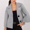 Η κομψή γυναικεία σακάκι σε κανονικό μήκος είναι ένα κλασικό κομμάτι που μπορεί να χρησιμεύσει τόσο στην εργασία όσο και σε επίσημες συναντήσεις ή σε καθημερινές εμφανίσεις. Το μοντέλο, που κλείνει με κουμπί, διαθέτει ραμμένα μαξιλάρια στους ώμους, προσθέτοντας στην σιλουέτα μια όμορφη προοπτική και μια κομψή αίσθηση. Η σακάκι έχει μακριά μανίκια, λεία υφή υλικού και μια διακριτική διακοσμητική μπροσούρα στο πέτο, που αποτελεί στυλιστική λεπτομέρεια. Κατασκευασμένη από υφάσματα υψηλής ποιότητας, από πολυεστέρα και ελαστάνη, εγγυάται άνεση στη χρήση και σωστή εφαρμογή. Η εσωτερική επένδυση διασφαλίζει μια αισθητικά άρτια ολοκλήρωση και αντοχή στη φόρμα. Είναι μια διαχρονική πρόταση, ιδανική για να συνδυαστεί με κλασικά παντελόνια, φούστα ή φόρεμα, δημιουργώντας κομψές εμφανίσεις για διάφορες περιστάσεις.
