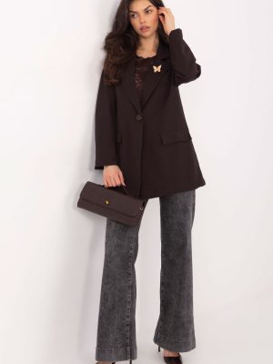 Μια κομψή γυναικεία σακάκι σε κανονικό μήκος είναι ένα κλασικό κομμάτι που ταιριάζει τόσο στην εργασία όσο και σε επαγγελματικές συναντήσεις ή καθημερινές εμφανίσεις. Το μοντέλο που κλείνει με κουμπί διαθέτει ραμμένα μαξιλαράκια στους ώμους, χάρη στα οποία αναδεικνύει θαυμάσια τη σιλουέτα και προσδίδει κομψό χαρακτήρα. Το σακάκι έχει μακρύ μανίκι, ομαλή υφή υφάσματος και μια λεπτή διακοσμητική καρφίτσα στην πέτα, η οποία αποτελεί στυλιστική λεπτομέρεια. Κατασκευασμένο από υφάσματα υψηλής ποιότητας, μείγμα πολυεστέρα και ελαστάνης, εγγυάται άνεση κατά τη διάρκεια της χρήσης και σωστή εφαρμογή. Η εσωτερική επένδυση διασφαλίζει κομψό φινίρισμα και ανθεκτικότητα του σχήματος. Είναι μια διαχρονική πρόταση, ιδανική για συνδυασμό με κλασικά παν trousers, φούστες ή φόρεμα, δημιουργώντας κομψές εμφανίσεις για διάφορες περιστάσεις.