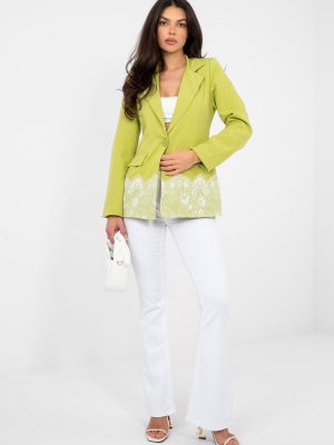 Μια κομψή γυναικεία σακάκι με διαχρονικό, κομψό χαρακτήρα. Το λείο σχέδιο καθιστά το μοντέλο κομψό και εύκολο στην παραλλαγή, ταιριάζει τέλεια τόσο με κομψά παντελόνια όσο και με φούστες, αλλά και με τζιν για πιο καθημερινές εμφανίσεις. Το μοντέλο έχει κανονικό μήκος, με μακριά μανίκια, κλείνει με κουμπί στο μπροστινό μέρος και αναδεικνύει όμορφα τη σιλουέτα. Οι ραμμένες μαξιλάρι στους ώμους προσφέρουν έμφαση στη δομή και υπογραμμίζουν διακριτικά τη γραμμή των ώμων, προσθέτοντας επαγγελματικό χαρακτήρα στην όλη εικόνα. Το σακάκι διαθέτει επένδυση, γεγονός που το καθιστά ιδανικό για άνετη εφαρμογή και ευκολία στη φόρεση. Στο κάτω μέρος έχει ολοκληρωθεί με προστιθέμενη διακοσμητική δαντέλα, που προσφέρει μια γυναικεία και λεπτή νότα και ξεχωρίζει το μοντέλο ανάμεσα σε κλασικά σχέδια. Κατασκευασμένο από ανθεκτικό και ελαστικό μείγμα πολυεστέρα με πρόσθετο ελαστάν, προσφέρει άνεση και ελευθερία κινήσεων. Είναι η ιδανική επιλογή για γυναίκες που ψάχνουν ένα κομψό σακάκι με διακριτική και διακοσμητική λεπτομέρεια.