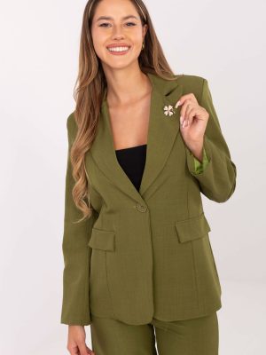 Το κομψό γυναικείο σακάκι σε στάνταρ μήκος είναι η ιδανική επιλογή τόσο για την εργασία όσο και για επιχειρηματικές συναντήσεις ή καθημερινές εμφανίσεις με στυλ. Το μοντέλο που κλείνει με κουμπί διαθέτει ραμμένα μαξιλαράκια στους ώμους, που προσδίδουν στη σιλουέτα έντονο χαρακτήρα και κομψή γραμμή. Το σακάκι ξεχωρίζει για τον ομαλό ύφασμα και την διακοσμητική καρφίτσα στο πέτο, ενώ οι μιμήσεις τσεπών κάτω από τα καπάκια τονίζουν την κλασική κοπή και προσθέτουν μια διακριτική κομψότητα. Το μακρύ μανίκι και το εσωτερικό φόρεμα διασφαλίζουν άνεση και αισθητική εμφάνιση. Κατασκευασμένο από υψηλής ποιότητας πολυέστερ με προσθήκη ελαστάνης, εγγυάται άνεση κατά τη διάρκεια της χρήσης και εξαιρετική εφαρμογή. Είναι ένα διαχρονικό κομμάτι ένδυσης που ταιριάζει τέλεια με παντελόνια, φούστες ή φορέματα, δημιουργώντας θηλυκές και επαγγελματικές εμφανίσεις.