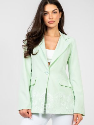 Στυλάτο γυναικείο σακάκι με διαχρονικό, κομψό χαρακτήρα. Η λεία ύφανση καθιστά το μοντέλο καθολικό και εύκολο στη στυλιζαρία, ταιριάζει τέλεια τόσο με κομψά παντελόνια, φούστες, όσο και με τζιν σε πιο καθημερινή έκδοση. Μοντέλο κανονικού μήκους, με μακριά μανίκια, κλείνει με ένα κουμπί, αναδεικνύει υπέροχα τη σιλουέτα. Οι ραμμένες ώμοι προσθέτουν ευκρίνεια στη δομή και υπογραμμίζουν διακριτικά τη γραμμή των ώμων, προσθέτοντας στην όλη εικόνα έναν επαγγελματικό χαρακτήρα. Το σακάκι διαθέτει επένδυση, που το καθιστά άνετο και ευκολοφόρετο. Στο κάτω μέρος έχει τελειώσει με διακοσμητική δαντέλα, που προσθέτει γυναικεία, λεπτή αίσθηση και ξεχωρίζει το μοντέλο από τις κλασικές γραμμές. Κατασκευασμένο από ανθεκτικό και ελαστικό μείγμα πολυεστέρα με προσθήκη ελαστάνης, προσφέρει άνεση και ελευθερία κινήσεων. Είναι η ιδανική επιλογή για γυναίκες που αναζητούν ένα κομψό σακάκι με διακριτική, διακοσμητική λεπτομέρεια.