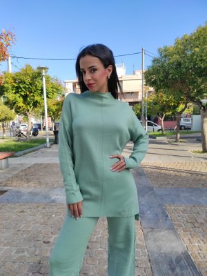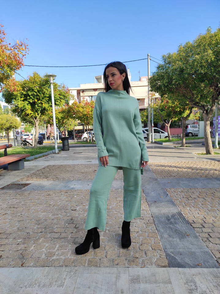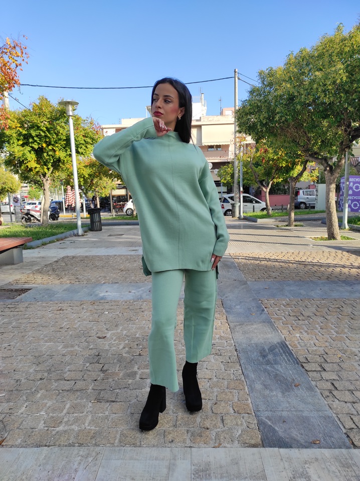 Σετ πλεκτής φόρμας στο χρώμα της μέντας με μεγάλη ελαστικότητα.