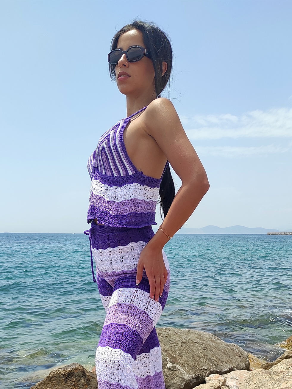 Σετ παραλίας πλεκτό με παντελόνα με λάστιχο στη μέση και τοπ με τιράντα
