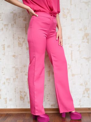 Σετ κοστούμι σε φούξια χρώμα με σακάκι σταυροκουμπωτό, φοδραρισμένο, με διακοσμητικές τσέπες και χρυσά κουμπιά και παντελόνι με πιέτες, λάστιχο στη μέση στο πίσω μέρος.